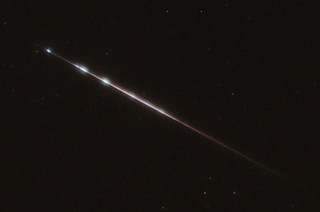 英仙座流星雨(右上角的粉色点)在这里可以通过加拿大流星轨道雷达在白天看到。(图片来源:CMOR/NASA)8. 你也许能听到流星的声音……也许吧。几个世纪以来,人们一直声称听到与流星相关的声音:嘶嘶声、嗞嗞声或爆裂声。这些报告通常被认为是闪光引发的幻觉,因为人们觉得闪光应该伴随着声音。这似乎尤其不可能,因为观测者报告的声音与闪光是同时发生的;任何来自流星本身的声音波都需要5到10分钟才能到达。最近,一些科学家认为这些声音可能确实是真的。一种理论是,流星产生的超低频无线电波可能会振动地面的金属物体(甚至发丝)。澳大利亚纽卡斯尔大学的物理学家科林·凯声称能够复制这种效应,现在也有许多可靠的关于流星声音的报告。但关于其机制,甚至该现象是否真实,仍然没有定论。有一个明确的方式可以听到流星的声音:你可以用雷达反射它,并将回声转换为一种可听到的、非常太空感的哔哔声。9. 我们已经在太空观测过英仙座流星。2011年,宇航员罗恩·加兰像许多其他观星者一样,密切关注着英仙座流星雨,但有一个很大的不同:他向下看,而不是向上看,因为他当时正身处国际空间站。事实证明,从上方看,流星很容易看到。加兰用他的尼康D3S拍下了下面的美丽照片。