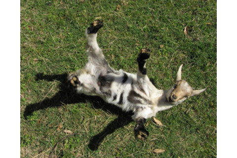 “昏倒”的山羊天生患有神经对肌肉控制的缺陷。它们在受到惊吓时会倒下。图片由Sharon Reeves, R Fainting Farm提供
