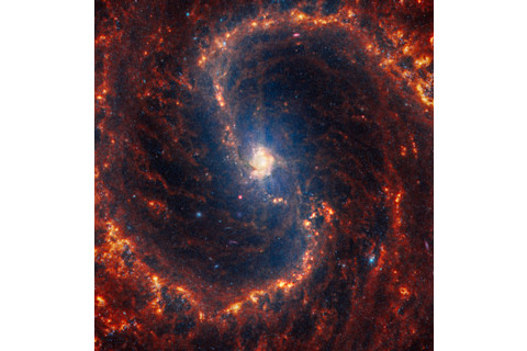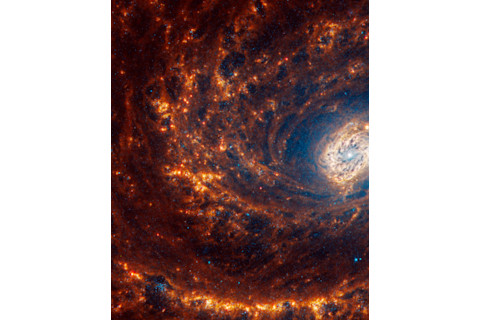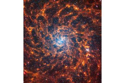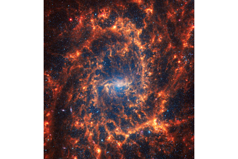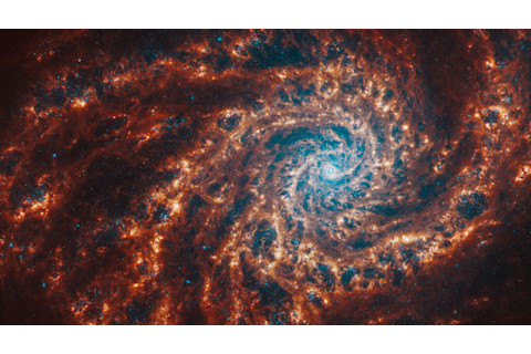 詹姆斯·韦伯太空望远镜 (JWST) 以一种新的视角捕捉到了 19 个近距离的旋涡星系。这些图像揭示了每个星系旋臂的复杂细节、星团以及星际物质中网状的、被雕刻出的气体丝。韦伯的 NIRCam 和 MIRI 器材捕捉到了发光的气体和光点。