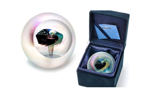 您太空极客书桌的完美配饰!这款 黑洞镇纸 采用致密的黑色和多层双色玻璃设计,在无尽的背景上创造了一个旋转的漩涡。