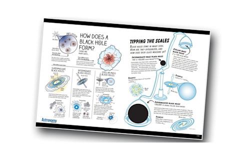 用这张黑洞海报点缀您老师的教室,或填满您太空伙伴墙上空白的空间。这张海报利用信息图表揭示了黑洞的不同形成和种类。