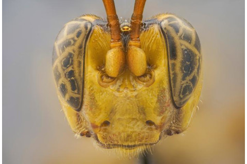 有一只标本脱颖而出:一只大型黄蜂,从正面看,它长得像一个留着杂乱胡须的老人和《铁血战士》的结合体。在本月发表在 ZooKeys 杂志上的一篇论文中,科学家们将这种昆虫识别为一种新的达尔文蜂物种,达尔文蜂是一个分布在世界各地的多样化家族。