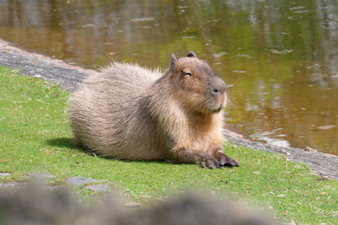- 水豚是世界上最大的啮齿动物,分布在南美洲,你可以在日本泡温泉时看到它们,甚至在北美动物园里看到它们。
