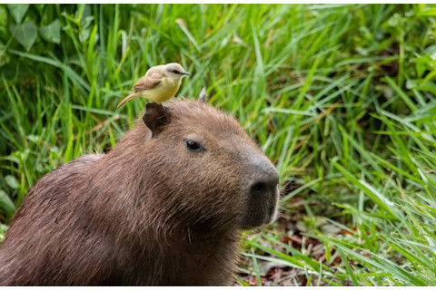 水豚头上有一只鸟(图片来源:Marcelo Morena/Shutterstock)