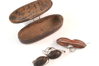 居住在北极地区的人们面临的另一个挑战是雪盲症。DeGennaro说:“阳光照射在冰雪上反射,显然这种强光会导致雪盲。”为了对抗眩光,原住民发明了现代太阳镜的前身。它们并非有色镜片,而是由动物骨头、浮木或象牙制成的护目镜。她解释说:“人们发明了这种紧密贴合面部的护目镜,上面有狭缝,可以减少到达眼睛的紫外线量。”
