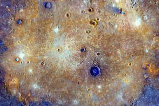 当NASA的信使号(MESSENGER)任务于2004年发射时,水星被认为是“死”星球。但该航天器于2011年的轨道抵达,以及随后超过25万张图像的记录,证明水星是一颗活跃的星球。今年,信使号(Mercury Surface, Space Environment, Geochemistry and Ranging的缩写)在燃料耗尽的情况下,将最好的留到了最后,以极快的速度掠过几乎没有大气层的星球表面。它收集到陨石坑角落中存在冰冻水的最新证据,发现了被称为“空洞”的奇怪岩石特征,以及一个几乎有40亿年历史的磁场演化过程。最终,该探测器于4月30日以每小时8800英里的速度撞击水星。这张照片显示了1000英里宽的卡洛里斯盆地——太阳系中已知的最大陨石撞击坑之一——熔岩(橙色)如何填充了撞击地点,然后新的陨石坑挖掘了原始盆地(紫色)。
