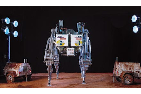 除了这些指令,迪诺本身就携带了控制自身所需的一切——来自 55 块密封铅酸电池组的动力,驱动每条腿的三台电动机,每条腿一台 700 兆赫兹的奔腾处理器,以及一台中央计算机,用于接收指令、从板载内存加载合适的软件并协调每条腿的响应。一个陀螺仪告诉机器人它倾斜了多少度,每只脚踝上的激光测量地面距离,以帮助计算应该如何迈步。传感器告诉迪诺每个电机旋转了多少以及机器人实际移动了多远。机器人不断地比较反馈读数,以确保多个测量结果是有意义的。它还监测电机的电流峰值或高温,以确定是否施加了过大的力,并跟踪速度和加速度限制。