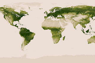 蓝色星球的绿色部分。图片 来源:NASA/NOAA 从太空俯瞰地球的景象通常会吸引人们的注意力到其表面被水覆盖的大部分区域,因此被称为“蓝色大理石”。然而,在这张地球的可视化图像中,SUOMI卫星专注于世界上的植物生命,并显示了它在一年的过程中可以发生的变化。该卫星在2012年4月至2013年4月期间收集数据,通过测量太阳能量以可见光和近红外光形式的反射来收集数据。植物吸收可见光进行光合作用。因此,在植被茂密的地区,如雨林,叶子会吸收大部分可见光,并将大部分近红外光反射回太空。相反,缺乏绿色植被的地区,如沙漠,会反射大部分可见光和近红外光。SUOMI卫星通过测量吸收和反射的可见光和近红外光的比例来确定植物的密度。利用这些数据,研究人员绘制了世界绿色植被的分布和密度。 动画版本 显示了植物覆盖的变化每周都在发生。