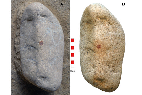 因此,当一个考古学团队在西班牙塞哥维亚的一个尼安德特人遗址——圣拉扎罗岩棚——发现一块鹅卵石时,他们决定给予特别关注。这块鹅卵石是长圆形,有三个主要的凹痕,凹痕之间有一个红点,几乎排列成人脸上的眼睛、鼻子和嘴的形状。