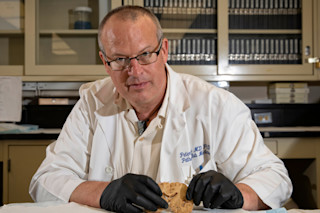 对一名痴呆症患者大脑进行的死后分析。(图片来源:Mark Cornelison)