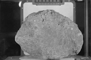 宇航员艾伦·谢泼德从锥形陨石坑边缘附近的月球表面 उठा起这块岩石,它在那里静置了数百万年,并将其带回地球进行分析。作为任务带回的最大样本,它被昵称为“大伯莎”。