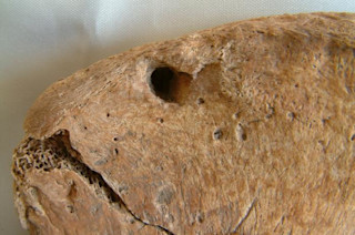 6DT19 左髂骨上的损伤。(图片来源:研究论文:“罗马不列颠地区人类-动物角斗士搏斗的独特骨学证据”)