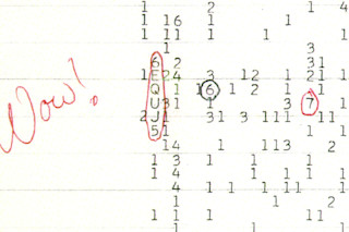(图片来源:维基共享资源)1977年,在72秒钟的时间里,大耳朵射电望远镜记录到一股强大的信号,从人马座的球状星团M55区域传来。对于当时作为SETI志愿者的俄亥俄州立大学天文学家杰里·埃曼(Jerry Ehman)来说,这似乎正是他一直在寻找的那种外星信息。它的频率接近氢线,符合外星文明可能用来在浩瀚的宇宙中进行通信的强范围。埃曼在打印稿上圈出了这个信号,并潦草地写下了“Wow!”