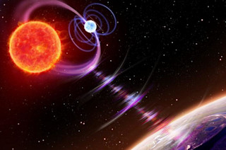 科学家们仍然不清楚这对恒星为何以及如何产生如此长的无线电脉冲。他们有两种理论:这些脉冲可能来自白矮星的强大磁场,或者由两颗恒星磁场的相互作用产生。