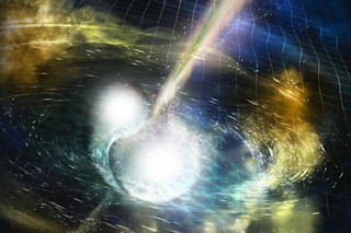 数亿年来,两颗城市大小的恒星——每一颗都超过我们的太阳——以致命的舞蹈互相围绕。 它们是中子星,是巨星爆炸成超新星后留下的坍缩核心。 然后,1.3亿年前,舞蹈结束了。 它们的碰撞是快速而猛烈的,可能产生了一个黑洞。 一种颤抖——引力波——在时空结构中荡漾开来。 来自灾难的光在几秒钟后到来。
