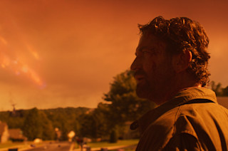 宇宙灾难片的情况也差不多。《当世界碰撞时》(When Worlds Collide),1951 年上映,如今被人们当作廉价俗气的展品,甚至在被人们记住的程度上也是如此。《流星》(Meteor),一部 1979 年由肖恩·康纳利(RIP)主演的本应轰动一时的影片,境遇也差不多。1998 年的《世界末日》(Armageddon)——一群石油钻井工人出发拯救地球免受一颗奇怪发光、近乎生物形态的杀手小行星的侵害——如今更多地作为一部“看人受虐”的喜爱之作而流传。因此,当我获得预览《格陵兰》的机会时,我既怀疑又好奇,《格陵兰》是一部 今天上映 的关于星际彗星撞击的电影,由杰拉德·巴特勒(上图)主演,里克·罗曼·沃(Ric Roman Waugh)执导。