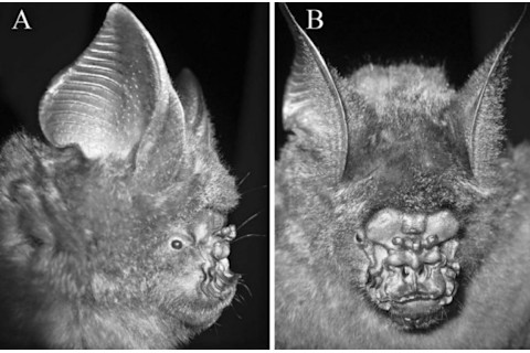 Whatcha looking at? This is just my face. This new leaf-nosed bat species was recently discovered in Vietnam. What's with the strange nose? Scientists think that its protuberances and indentations help the bat in echolocation. Come to think of it, it does kind of resemble another excellent sound detector: the inside a cat's ear . As strange as the Hipposideros griffini's nose is, it's really got nothing on the star-nosed mole . [via National Geographic News ] Image courtesy of Vu Dinh Thong / Journal of Mammalogy