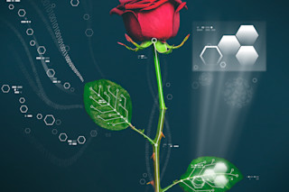 瑞典科学家从当地花店购买了新鲜的玫瑰,并将它们放入含有称为PEDOT-S的导电聚合物的水中,该聚合物与水和带正电的离子结合时会形成凝胶。当玫瑰吸收水分时,它也吸收了聚合物分子。结果是在花茎内部形成了一个长而细的导电材料圆柱体,长达数厘米。玫瑰的维管系统已将聚合物组装成了导线。通过将电极连接到玫瑰木质部中的PEDOT导线上,林雪平大学的Eleni Stavrinidou和她的同事们创建了一个工作的电化学晶体管——计算机芯片和其他电子设备的基本组件。研究人员声称,他们的成功为开发内置传感器和其他技术的植物奠定了基础。当然,用聚合物填充植物的木质部动脉通常是植物的死刑。但玫瑰灌木上的每个分支都有多个木质部通道,共同作者Magnus Berggren说,如果只有部分木质部通道被填充,而其他通道保持开放以输送水分和养分,植物就可以生存。这可以通过用注射器将PEDOT直接注入正确的木质部通道,或者让植物的根系只有一部分暴露于聚合物来实现。Berggren、Stavrinidou和他们的同事们在他们的演示中使用了剪下的玫瑰,而不是完整的植物,他们将这项研究发表在《