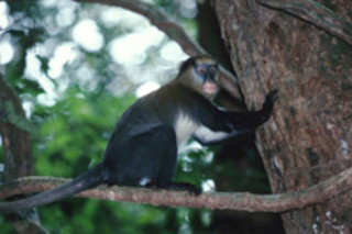 猴子可以通过添加后缀“-oo”来改变叫声:“krak-oo”似乎是捕食者的通用词,但它在特殊情况下使用——当猴子听到但看不到捕食者时,或者当它们听到另一种名为迪安娜猴的物种发出的警报叫声时 [《纽约时报》]