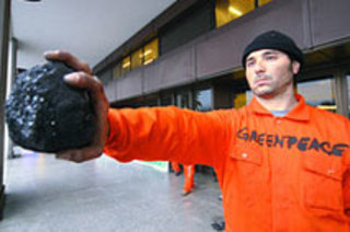 去年十月,绿色和平组织的抗议者爬上一个燃煤发电厂的烟囱,作为宣传噱头,抗议英国持续依赖燃煤发电厂。燃煤发电厂会排放大量导致全球变暖的温室气体。抗议者在其中一个烟囱上涂写标语(“戈登,把它扔进垃圾桶”,这是英国人要求首相戈登·布朗放弃煤炭的一种方式),当警察乘直升机向活动家送达禁令并强迫他们停止时,标语只写了一半。他们被控造成超过5万美元的损失,这是清除油漆的成本。拥有该发电厂的 E.ON 表示,公司对这一裁决感到震惊 [《泰晤士报》]。