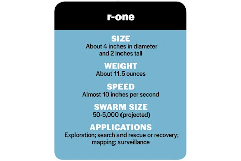 这些成功的测试促使麦克洛金开始思考实际应用,例如在地震后搜寻幸存者或探索火星表面。如今,作为莱斯大学多机器人系统实验室的主任,他正致力于实现这些目标。尽管他早期的仿生蚂蚁有触角和颚,但麦克洛金最新的模型 r-one,与其前辈或自然灵感没有任何相似之处。相反,它看起来像一个特大号的冰球。每个单元都由内部锂聚合物电池供电,价格约为 250 美元——比其更像蚂蚁的祖先便宜了约 10 倍。麦克洛金希望将成本降低到每台 100 美元,从而使大规模部署用于搜救或其他艰巨任务更加可行。
