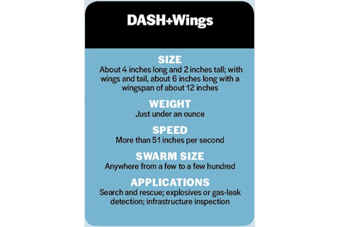 另一名研究生凯文·彼得森 (Kevin Peterson) 添加了电动拍打翅膀和尾巴,使 DASH 速度更快,超过每秒 4 英尺。经过修改的单元还可以攀爬更陡的斜坡,并在跌落时保持直立。彼得森从各种高度上掉了“DASH+翅膀”,它几乎总是能四脚着地。