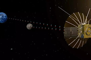 鹊桥嫦娥四号月球卫星的视觉效果图,该卫星将中继月球表面的着陆器-巡视器与地球上的任务操作员之间的通信。 (来源:中国科学院)