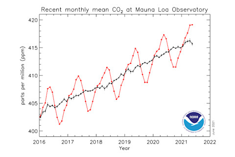 我们大气中的二氧化碳在 5 月份达到了年度峰值,达到了自 63 年前有现代观测记录以来的最高直接测量水平。