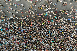 每 12 年,数千万印度教朝圣者会前往印度中部参加 Kumbh Mela,这是一个朝圣者通过仪式性沐浴赎罪的宗教活动。在 2019 年的活动中,研究人员通过手机和监控摄像头以及无人机和气球的航拍画面记录了人群。