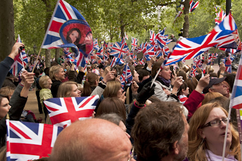2011 年 4 月 29 日,伦敦威廉王子和凯特·米德尔顿婚礼的观众。(图片来源:Thomas Dutour/Shutterstock)