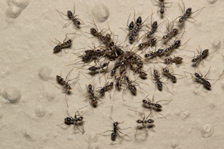 疯狂蚂蚁以其 erratic 的运动和持续的气味标记而闻名。当它们行走时,每走几步就会将腹部接触地面,留下引导他人的信息素。