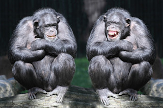 这时嘴角的两边会向后拉,有时会使下眼睑稍微起皱。但这种起皱,在我们自己的笑声中非常普遍,在其他一些猴子身上表现得更明显。当黑猩猩发出笑声时,上颚的牙齿不会露出来,这一点与我们不同。