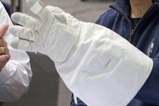 EMU:手套的手指虽然在指尖上覆盖了硅橡胶以获得更好的抓握力,但仍然僵硬且臃肿。