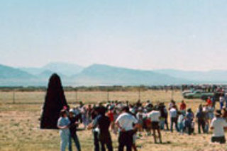 起初,导览气氛热烈,但人们离引爆点历史标记越近,谈话声就越低沉。起初我有些失望。即使在零点,也没有弹坑,只有一个略微碗状的洼地,因为炸弹在空中 100 英尺处爆炸,悬挂在一个瞬间被汽化的塔上。我走到标示那个地点的一块平坦的石碑。碑上刻有一块铜牌,上面简单地写着:“三位一体试验场——1945 年 7 月 16 日,这里发生了世界上第一次核装置爆炸。”我对自己说:“就这样?”但说实话,你怎么能标示出人类学会扮演上帝的那个点呢?