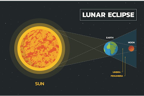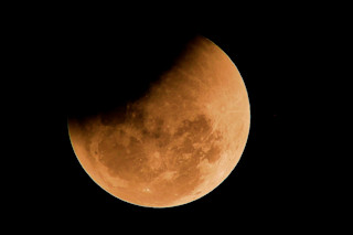 月食发生在地球经过太阳前面,阻止阳光反射到月亮上时。当月亮的一部分被地球的本影遮挡时,就会发生月偏食或近乎全食。这将导致月亮呈现红橙色。