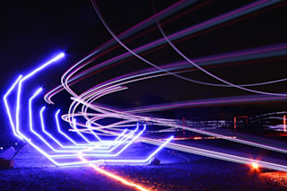 这张长曝光照片展示了大卫·莫凯的无人机夜间竞速跑道之一,赛车手道格拉斯·安德鲁克称之为“弯曲的光剑”。想象一下,夜幕降临后,你坐在灵活快速的飞机后面,在复杂但光线充足的赛道上比赛。这听起来像是《星球大战》电影中的情节,但实际上是一位亚利桑那州艺术家对第一人称视角(FPV)无人机竞速这一新兴地下运动的创新。去年夏天,当亚利桑那州干燥的天气变得酷热时,大卫·莫凯开始尝试建造照明跑道,以便他的小型 FPV 团队可以在凉爽的夜间进行比赛。莫凯的赛道为无人机赛车手提供了一种新的、视觉上引人注目的挑战,为观众提供了壮观的灯光秀,并为飞行员提供了深刻的真实体验。赛道实验 莫凯是一位拥有电影后期制作背景的艺术家,他已经尝试设计无人机夜间竞速赛道大约八个月了。他说,起初情况并不乐观,但通过不断调整赛道以适应赛车手的需求,取得了一些引人注目的成果。最初,莫凯使用计算机程序 Sketch 设计赛道,这使他可以在赛道表面的地形图上进行设计,并注意赛道的轮廓。设计完成后,莫凯的团队在他的后院建造赛道,并在步行和比赛后,根据需要进行调整。道格拉斯·安德鲁克是一位退役的空军飞行员,服役 21 年,他参加了莫凯建造的每一条赛道的比赛。他说,夜间赛道最初非常简约,只有内外障碍物勾勒出赛道的轮廓。它慢慢发展成包括各种由泡沫和 PVC 管制成的形状和障碍物,供飞行员飞越,其中包括一个安德鲁克形容为“肋骨”的开放式圆圈。与无人机合二为一 莫凯说:“如果你是一位狂热的视频游戏玩家,那么你会喜欢 FPV 竞速。” “这就像把《星球大战》和《创:战纪》带到你的后院,”他说。 FPV 竞速这项小众运动使用护目镜,从安装在无人机前部的摄像头传输实时、标清视频。安德鲁克说:“迷你多旋翼飞行器是 FPV 赛车手的首选无人机,在赛道上可以达到高达每小时 60 英里的速度”,但他通常只达到每小时 40 英里。这是一种身临其境的体验,是虚拟现实的一种新变体,让赛车手进入驾驶舱并控制无人机。安德鲁克说:“在夜间赛道上比赛只会增强这种体验。” 安德鲁克解释说:“白天你的眼睛会获得更多的信息,但在晚上,它看起来像是在一群弯曲的光剑中穿梭。” 他说,莫凯在赛道中间建造了一个照明球体,看起来像一个大月亮,以帮助照亮整个区域。 安德鲁克说:“即使你不参加比赛,它在视觉上也很有吸引力。” “在夜间比赛中观看它很有趣;这是一种不同的视角,在白天你很容易迷失多旋翼飞行器的踪迹。” 去年八月,莫凯受雇为亚利桑那州坦佩市的无人机战争比赛建造了一条赛道,并且有更多赛道设计机会即将到来;他目前正在制作一个以《爱丽丝梦游仙境》为主题的赛道。凭借他的夜间赛道所获得的兴趣,他说他正在考虑将这种爱好变成一项商业冒险。