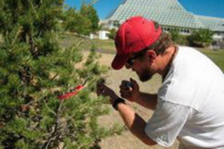 相关内容:80beats:美国西部森林正在死亡:全球变暖可能是罪魁祸首 80beats:热浪使草原作为“碳汇”的效率降低 80beats:想捕获碳?保护老树图片:亚利桑那大学。Adams 正在为将矮松移植到 Biosphere 做准备。