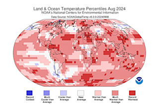 上个月是有记录以来最热的8月。“酷热”是通常严肃的美国国家海洋和大气管理局(NOAA)用来总结其定期月度分析结果的词。