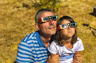 当全食发生,月亮完全遮蔽了我们星球的恒星,您从眼镜后面看不到任何光线时,可以安全地取下防护观察设备。然而,全食是短暂的,持续最多几分钟,所以一旦一丝光线显现,您就必须重新变回一位谨慎的、戴着眼镜的观察者。