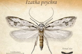 2005 年一个温暖的夜晚,罗伯特·霍尔(Robert Hoare)首次发现了神秘的 *Izatha psychra*,这是一种新西兰的濒危飞蛾。在新西兰南岛中部,在普卡基科学保护区(Pukaki Scientific Reserve)的围栏平原和倾斜的山丘之间,这位昆虫学家搭建了一个发电机驱动的光阱。然后,在午夜前一个小时——就在发电机燃料即将耗尽,一切陷入黑暗之际——他瞥见了扑动的翅膀和一丝灰色的闪光。
