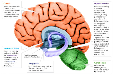 研究人员仍在努力拼凑大脑如何形成记忆。以下是一些被认为涉及到的区域