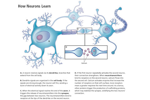 1973年 挪威生理学家特尔耶·洛莫发表研究结果,揭示了对一个海马神经元重复刺激会导致其连接神经元反应增强。连接神经元“学习”了刺激并在数小时后记住。这种现象被称为长时程增强。