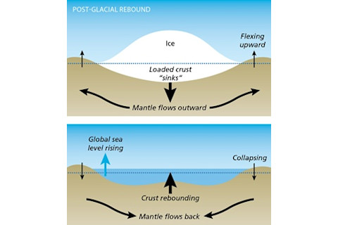 首先,有一个叫做冰后回弹的现象。堆积在陆地上的冰会将其压入地壳下方的柔软地幔层。随着我们世界的变暖,曾经被冰覆盖的地区正在回弹,陆地正在被抬升。这也是不同海岸海平面上升幅度不同的原因之一。