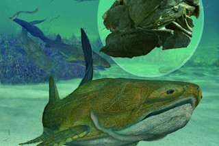 Entelgnathus primordialis是一种八英寸长的盾皮鱼——一种装甲鱼——生活在4.19亿年前覆盖中国的海洋中。 像其他盾皮鱼一样,Entelgnathus头部和胸部有装甲板,但它也具有更先进的颌骨特征。 这些更现代的上颌骨、下颌骨和齿骨——统称为皮肤边缘颌骨——以前只在骨鱼或骨甲纲动物中见到。 在Entelgnathus中发现的原始特征和更进化特征的混合表明,它可能不是现代鱼类的远亲,正如盾皮鱼通常被认为的那样,而是可能的祖先。
