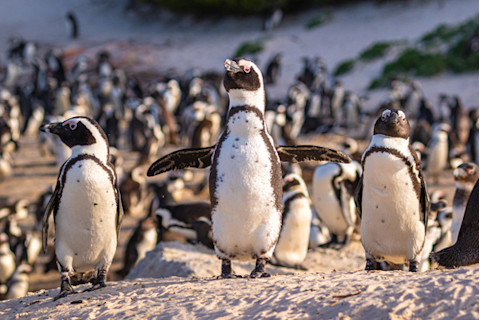 这种易危动物物种以洪堡洋流命名,洪堡洋流是沿着南美洲流动的冷水洋流。洪堡企鹅以凤尾鱼、鲱鱼、磷虾和鱿鱼为食——有时为了觅食会潜入超过180英尺的深度。由于用于肥料的鸟粪采集造成的栖息地破坏、凤尾鱼渔业导致的食物供应减少、厄尔尼诺气候模式以及气候变化,它们的数量显著下降。在陆地上,它们被狐狸、卡拉卡拉鸟和野狗捕食。在水中,洪堡企鹅是鲨鱼和海狗的食物。尽管有保护措施,洪堡企鹅仍受到捕获的威胁。这可能是为了将它们用作鱼饵或供人类食用。请查看这段关于几个月前在智利获救的洪堡企鹅的视频。