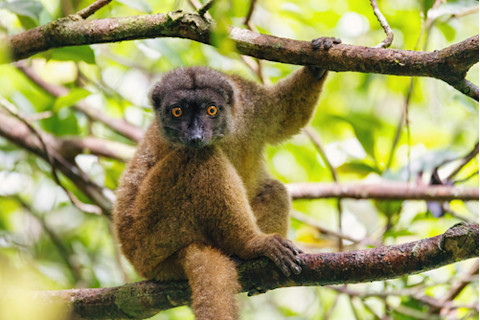 狐猴有110个物种,所有这些物种都原产于马达加斯加。这种三磅重的毛狐猴因其厚密的背部皮毛而得名。它们的尾巴比身体长,用来在跳跃到不同树木时保持平衡;不过,它们不是很活跃。这些夜行动物即使在夜间也不怎么活动——主要是因为它们是食叶动物,这意味着它们的饮食完全由叶子组成,所以获取的营养不多。毛狐猴一生只与一个伴侣交配,它们生活在家庭群体中,有雄性、雌性和后代。它们甚至一起睡在树上,离地面6到30英尺高。人类是它们易危的主要原因,包括伐木、刀耕火种的农业和狩猎。看到这些动物被列入IUCN红色名录令人沮丧。