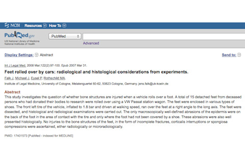 图片:flickr/Jared and Corin欢迎来到第一期周五回忆!我们现在已经写了数千篇博文,我们认为一些我们最喜欢的论文值得重新审视,并添加一些评论来帮助我们的读者欣赏这些珍宝。今天,我们将重温一篇在我们多年来挖掘古怪科学研究的过程中,材料和方法部分最令人毛骨悚然的论文。它提出了一个完全合理的问题:当一个人的脚被汽车碾过时,骨头多久会断裂一次?之后它变得有点奇怪(请阅读下文),然后我们惊奇地发现,当脚被汽车碾过时,骨头通常不会断裂。这确实令人感到安慰。脚被汽车碾过:实验中的放射学和组织学考量。“本研究调查了当车辆碾过脚时,骨骼结构是否会受伤的问题。我们使用一辆大众帕萨特旅行车碾过了总共15只来自捐赠遗体的死者离体脚。这些脚被穿上了各种类型的鞋子。车辆的前左轮胎充气至1.8巴,以步行速度行驶,以垂直于长轴的方向碾过脚部。对脚进行了解剖,并进行了组织学和放射学检查。唯一肉眼可见的表皮擦伤位于脚背,即与轮胎接触的区域,并且仅限于未被鞋子覆盖的区域。这些擦伤在组织学上也表现良好。无论是放射学还是显微放射学,都没有发现脚骨结构的损伤,如不完全骨折、皮质中断或海绵状骨压缩。”