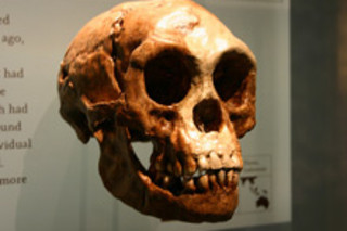 图片:flickr / 瑞安·索马。展出的重建霍比特人头骨。
