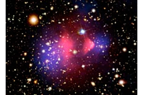 X射线:NASA/CXC/CfA/M.Markevitch 等;光学:NASA/STScI;Magellan/U.Arizona/D.Clowe 等;引力透镜图:NASA/STScI;ESO WFI;Magellan/U.Arizona/D.Clowe 等