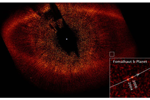 但这些新发现的天体大小适合行星,并且被观测到围绕着它们的母星运行。这两项发现都发表在《科学》杂志的在线版本上[需要订阅],并且两个研究团队都克服了在恒星巨大的光芒下探测行星微弱光芒的困难。发现围绕南门二(Fomalhaut)(配图)运行的这颗单独行星的团队,使用了哈勃太空望远镜上的日冕仪,这种装置可以阻挡中央恒星的光线,从而使行星的光芒更加明显。这颗现known as Fomalhaut b 的行星位于一个巨大的碎片盘的内缘,它以很大的距离绕其恒星运行,每 872 年完成一次公转。首席研究员 Paul Kalas 指出